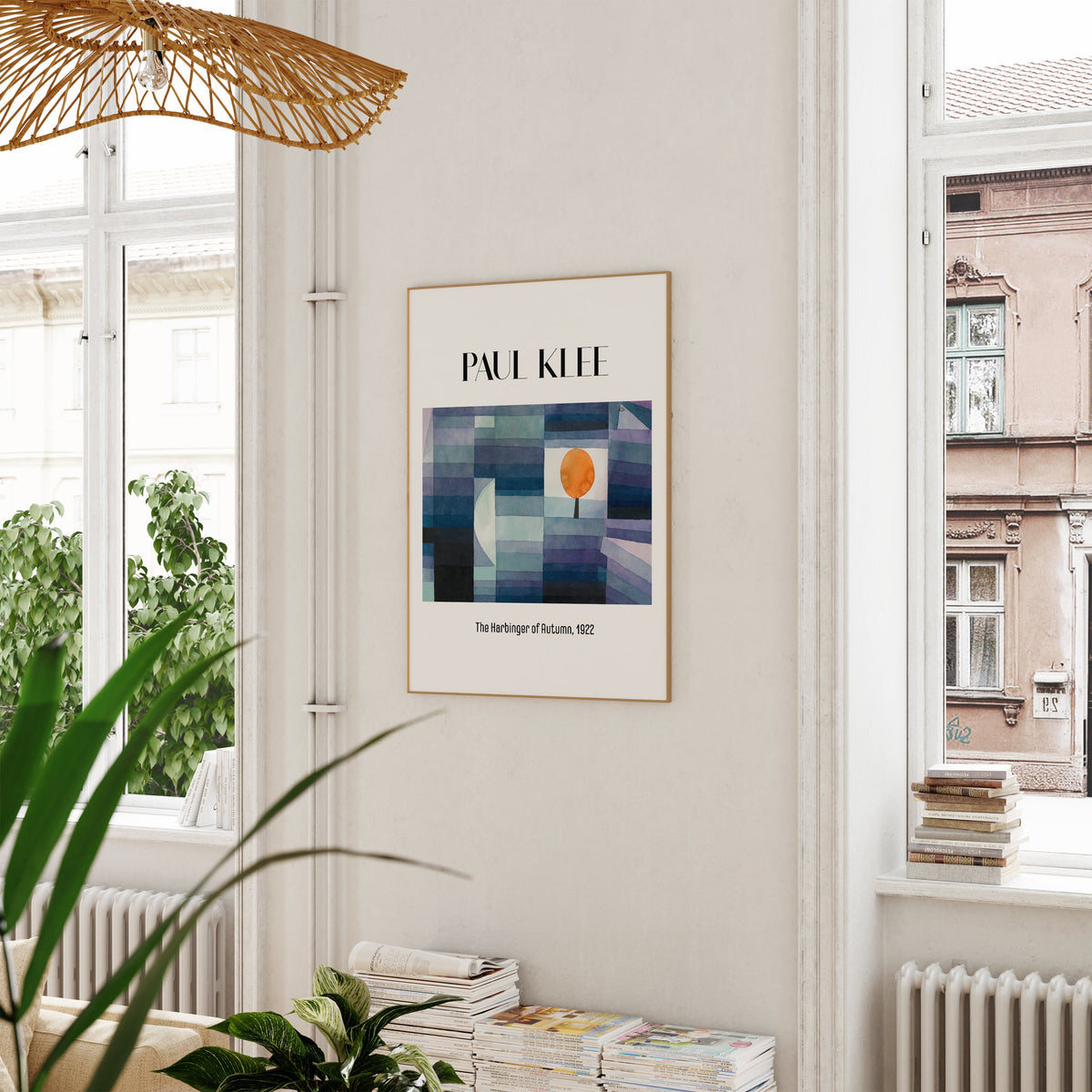 Ten plakat przedstawia „Zwiastun jesieni” Klee – mieszankę abstrakcyjnych kształtów i kolorów, które przedstawiają przejście od lata do jesieni. Obraz zawiera charakterystyczne dla Klee symbole, odzwierciedlające zmiany pór roku i upływ czasu. Idealny dla miłośników sztuki.